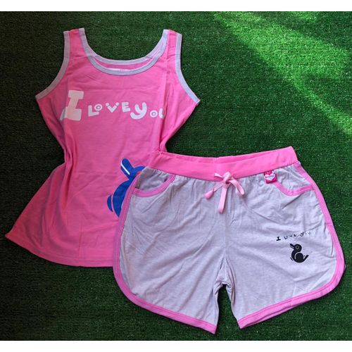 A comfortable lounge wear set featuring a loose-fit top and drawstring pants. Perfect for relaxing at home.